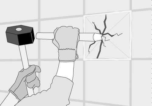 Con ayuda de un cincel y combo se debe desprender la cerámica. El combo sirve para golpear el mango del cincel, por eso es importante hacerlo con cuidado para no pasar a llevar el resto de las cerámicas.