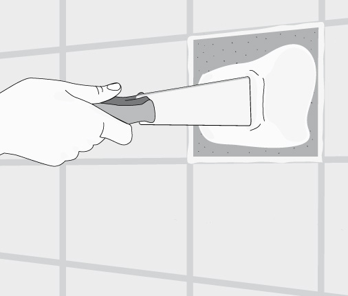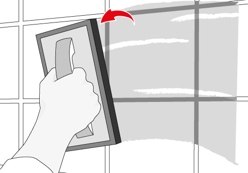 El fraguador sirve para esparcirlo homogéneamente por los surcos, pero también hay que utilizarlo para que no quede exceso en la superficie de la cerámica.