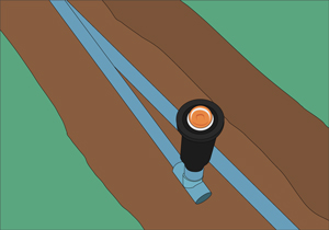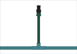 Hacer la unión de las tubería con los regadores, pegando Tee para hacer las conexiones en altura para los regadores. La altura del tubo donde se pondrá el regador se debe dimensionar según la profundidad de la zanja.