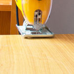 - Enciende la sierra, con la hoja fuera de la madera, y luego mueve lentamente hacia adelante, guiándote por la línea de corte.