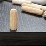 Para soluciones entarugadas, utiliza tarugos estriados y haz una perforación guía a una distancia mínima de 25 mm del borde. Esta perforación debe ser levemente mayor que el diámetro del tarugo, lo que permitirá una buena cobertura de la cola fría, y 1,5 mm más larga que el mismo tarugo. Ten la preocupación de dejar un encaje suave entre las piezas. Cualquier presión ejercida de más podría dañar las piezas.