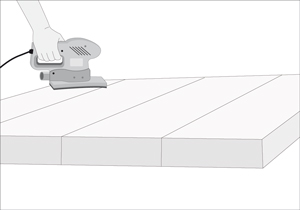 Una vez seca la estructura se debe pulir con lijadora orbital y lija para madera nº 180. De esta forma se eliminan los filos, restos de cola fría y astillas que pueda tener. No es necesario eliminar las irregularidades propias del diseño industrial que tiene la mesa, pero sí las astillas.