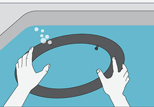 - Hundir el neumático en el agua e irlo girando hasta detectar algún lugar desde donde salgan burbujas, eso indicará el lugar del pinchazo.