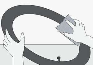 - Lijar el lugar del pinchazo con la lija metálica que trae el kit de reparación. Esto hará que la superficie quede porosa y el adhesivo y el parche se peguen mejor.