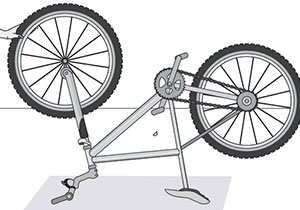 - Voltear la bicicleta, que quede apoyada en el suelo con el manillar y el asiento.