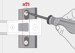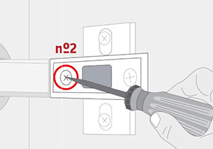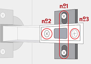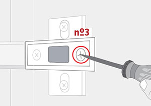 - Si la puerta está muy afuera en relación al resto, gire el tornillo en el sentido de las agujas del reloj.
