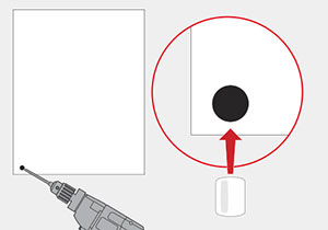 - Para ello hay que hacer una pequeña perforación con el taladro en la esquina inferior.