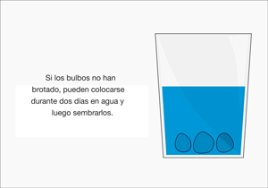 Si no han brotado aún los bulbos pueden colocarse durante dos días en agua y luego sembrarlos.