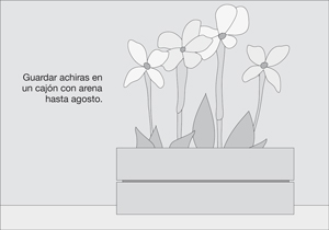 - Se rebajan las achiras, se sacan del suelo y se guardan en un cajón con arena, en un sitio cerrado, hasta el mes de agosto.