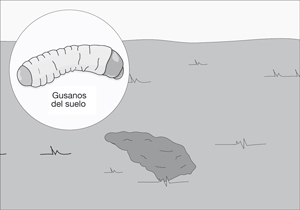 - Algunos espacios de césped ralo pueden explicarse por la presencia de gusanos del suelo, los que irán colonizando gradualmente las partes verdes. Precisamente en el límite entre el pasto saludable y el que está seco se pueden buscar estos gusanos. Con una pala se toman muestras de tierra y, de comprobarse su existencia, se aplica algún producto especial para eliminarlos.