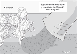 - Las camelias se benefician con una dosis de sulfato de fierro y una dosis de Vilmorin con magnesio en el suelo alrededor.