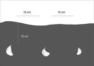 - Poner un diente de ajo por holladura, procurando que la punta quede hacia arriba.