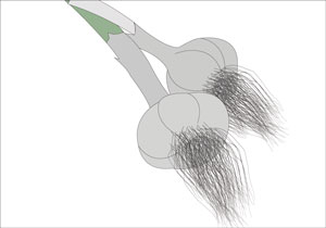 - Separar los dientes de una cabeza o bulbo de ajo.