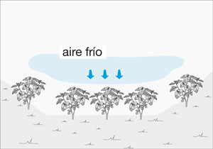 - Evitar plantar especies sensibles en terrenos planos, donde las heladas se mantienen mayor tiempo, efecto que se debe a que el aire caliente tiende a subir, mientras el aire frío es más pesado. Algunas especies muy sensibles a las heladas son: fucsia, alcanforero, lúcumo, aralia gigante, hibisco, floripondio, coprosma y banano.