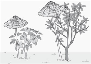 - Envolver las plantas de tallos verdes con una cubierta de arpillera o totora, especialmente el extremo de sus ramas. Tomar esta precaución especialmente con: gomero, palo borracho, ceibo enano; o con el jacarandá, el ombú y la bahuinia en su etapa juvenil.