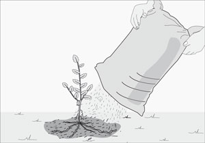 - Proteger las especies recién plantadas realizando un “acolchonamiento” con guano y tierra de hoja alrededor de las raíces superficiales, o acumulando paja en la base de la planta.