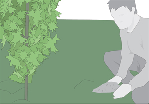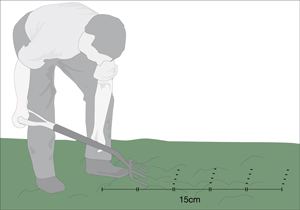 En el césped hacer agujeros con una horqueta cada 20 a 30 cm y con 10 cm de profundidad.