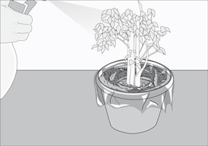 En invierno es necesario pulverizar el follaje de las plantas de interior por lo menos 2 veces al mes, ya que la calefacción disminuye la humedad ambiental, provocando una mayor pérdida de agua por transpiración de las hojas.