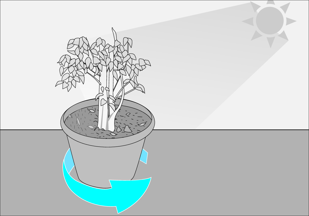 - Mover el macetero sobre su eje para que llegue luz en forma pareja.