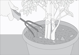- Todas las semanas horquetear la tierra del macetero para descompactar y airear.