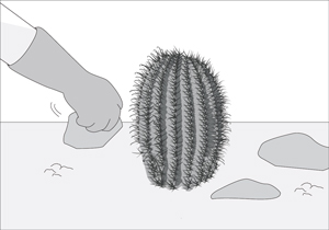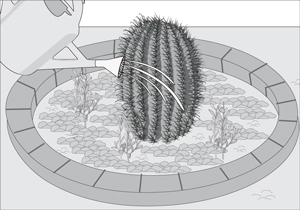 Sacar las piedras, malezas y remover la tierra alrededor de las suculentas y cactus que hay en el jardín de rocallas.