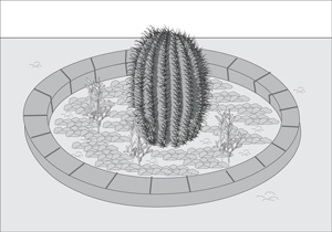 Alrededor del cactus existente plantar diferentes tipos de suculentas, con una distancia aproximada de 20 cm cada una.