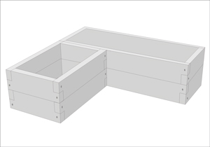 Para armar las huerta hay que hacer en todos los extremos de las tablas un calados a media madera, esto es un corte de 4x 6.5