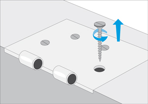 Lo recomendado es, una vez detectada la falla de las bisagras, comenzar revisando el estado de los tornillos. Es necesario para esto apretar todos los tornillos y ver si alguno de ellos sigue girando sin llegar a un tope. Si esto último ocurre, significa que el hilo de la madera está rodado y que hay que ajustar como se indica a continuación.