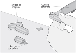 Se deja reposar los tarugos por 12 horas y se recorta lo que sobra con un cuchillo cartonero o un formón.