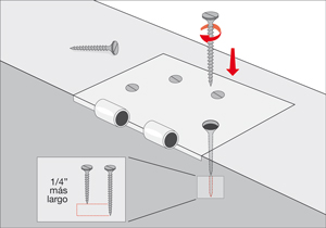Insertar los tornillos y apriete. Si estos quedaran cortos, reemplácelos por unos más largos.