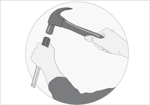 Se golpea el formón con la cara plana de la cabeza del martillo hasta la profundidad deseada.