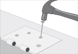 Abrir la bisagra y colóquela en posición. Con un clavo común marque un agujero guía.