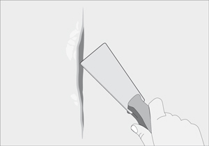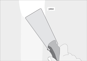 Rebajar los bordes del agujero o grieta para que el yeso no quede sobre el nivel, así se mantiene lisa la superficie.