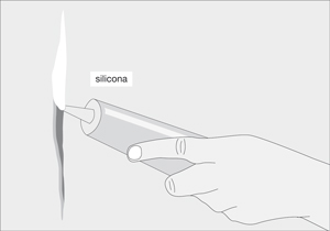 Con silicona para concreto y madera rellenar la grieta.