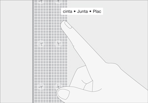Pegar la cinta Junta Plac en la unión del repuesto y el tabique.