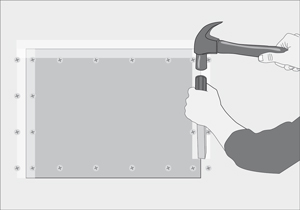 Fijarlo al marco de listones con tornillos vulcometal.Es importante dejar bien hundidos los tornillos en la madera.