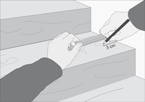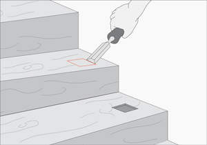 Se marca su base a 3 cm de los bordes del peldaño calculando que quede centrado.