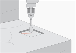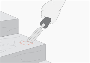 Se comienza marcando con el formón todos los bordes del cuadrado y después se comienza a ahuecar.