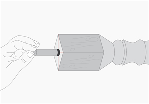 Primero se fija con bastante cola fría el pilar de inicio al peldaño, cuidando que el tarugo quede bien embutido.
