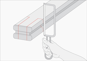 Este corte se puede hacer con sierra manual, serrucho o sierra eléctrica.