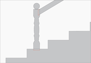 Para saber cómo formar la espiga y cuánto cortar de la baranda, la mejor técnica es acercar el pilar de arranque al pasamano y con un lápiz marcar en la baranda el tamaño y forma que se dará a la espiga. Además se traspasa al pilar el tamaño y ubicación del calado donde irá embutida la espiga.