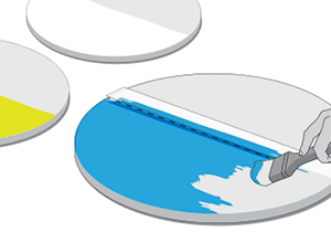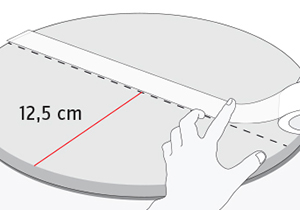 Marcar la mitad del círculo con lápiz mina, es decir a los 12,5 cm. Enmascarar la parte de arriba del círculo para pintar la de abajo.