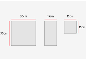Hacer tres plantillas. Para eso hay que cortar cartulina en 12 trozos de 30x30 cm, 30 de 15x30 cm y 12 de 15x15 cm, hay que hacerlo con cuidado para que los bordes queden perfectos.
