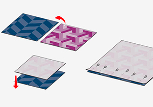 El proyecto consiste en una alfombra que tiene un tamaño total de 1,5 m x 1,8 mt. Estará dividida en 30 cuadrados de 30 cm, que a su vez estarán divididos en trozos de 15x30 cm y 15x15 cm. El patrón se debe desplazar una casilla hacia la izquierda. El patrón se hace para tener un equilibrio estético y no es necesario que se perciba.