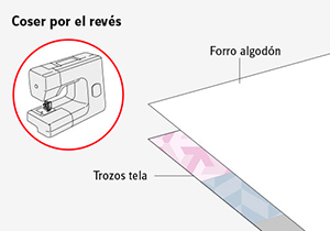 Con máquina hay que coser los trozos unidos con alfileres, haciendo una puntada lineal fina.