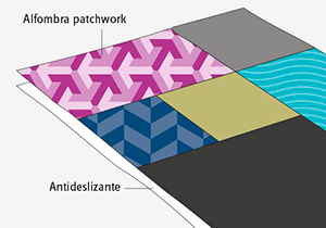 Una alfombra de patchwork puede ser muy resbalosa por lo que hay que usarlos con un antideslizante por el revés.