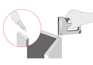 Juntar de canto y haciendo calzar los ángulos los 6 trozos cortados de pino cepillado, poner cola fría y fijar con la engrapadora.