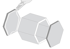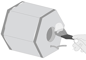 Con cola fría pegar la trasera y el frente en el hexágono.