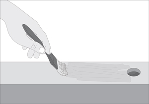 Aplicar con brocha un stain color castaño a los pilares de madera, pintando incluso dentro de las perforaciones para que la superficie quede bien protegida.