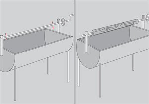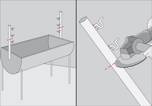 Con el esmeril cortar el spiedo, dejando sólo 10 cm a cada extremo que irán embutidos en el palo chochoquero para que se pueda dar vuelta sobre el fuego.